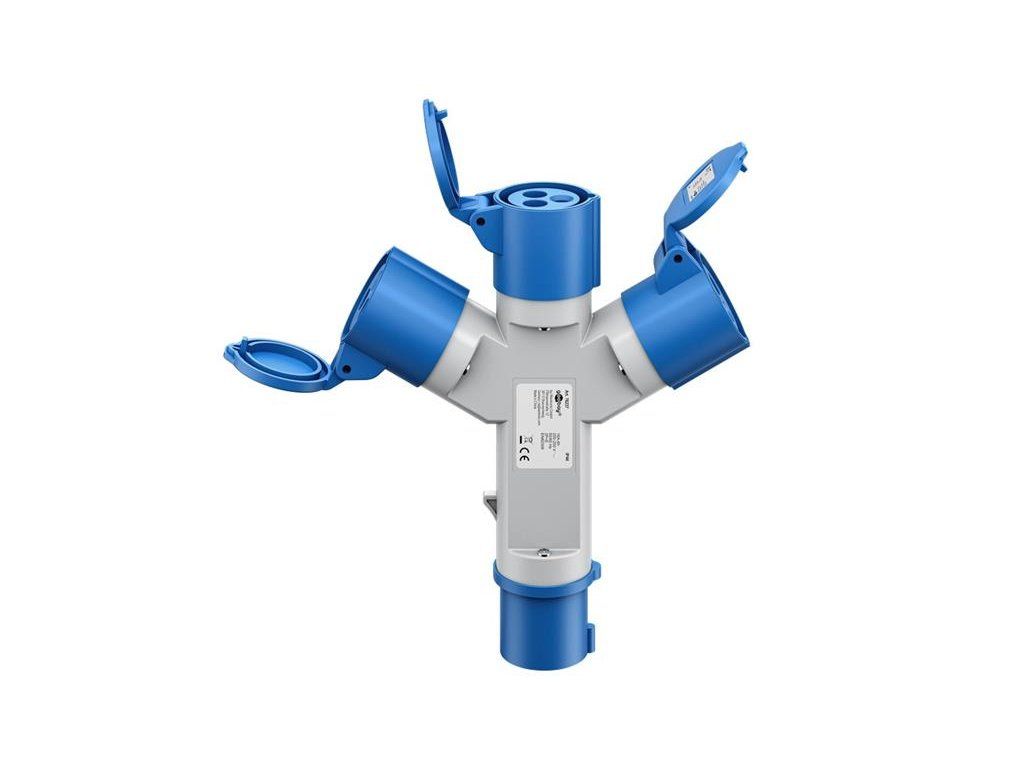 Rozširuje jediné CEE pripojenie na kempingových napájacích bodoch na tri CEE zásuvky