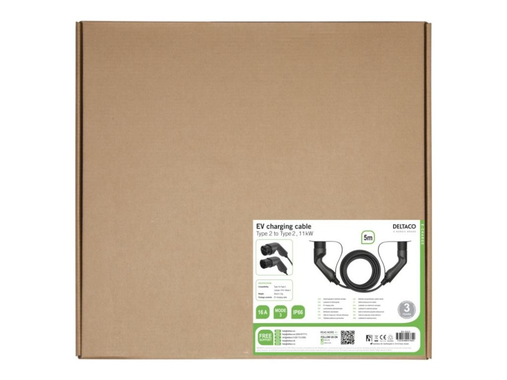 DELTACO EV-3215, Kábel Typ 2/11 kWh 5m