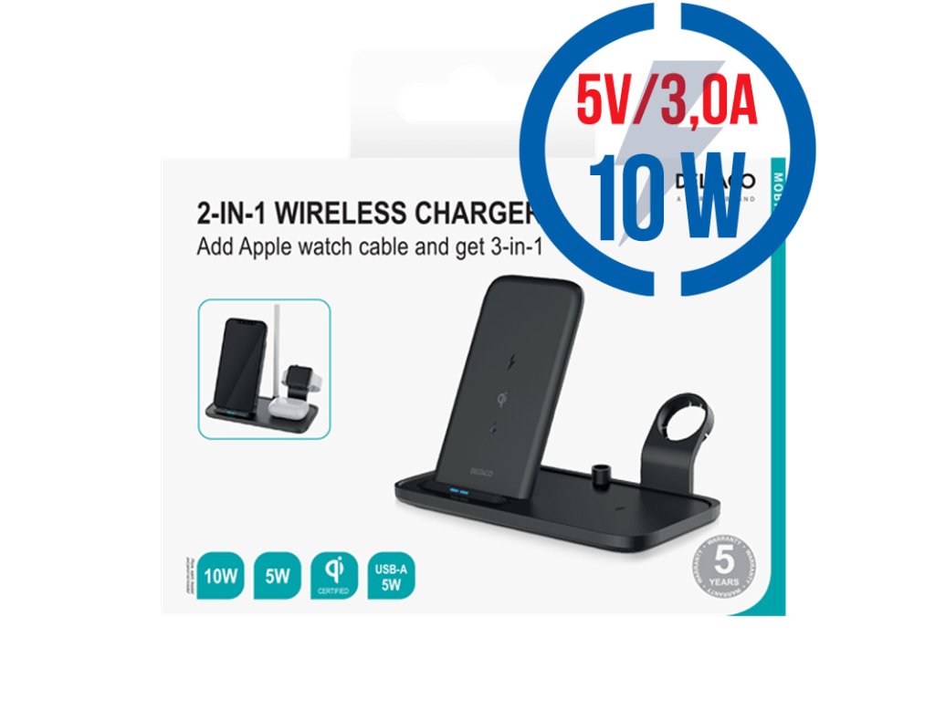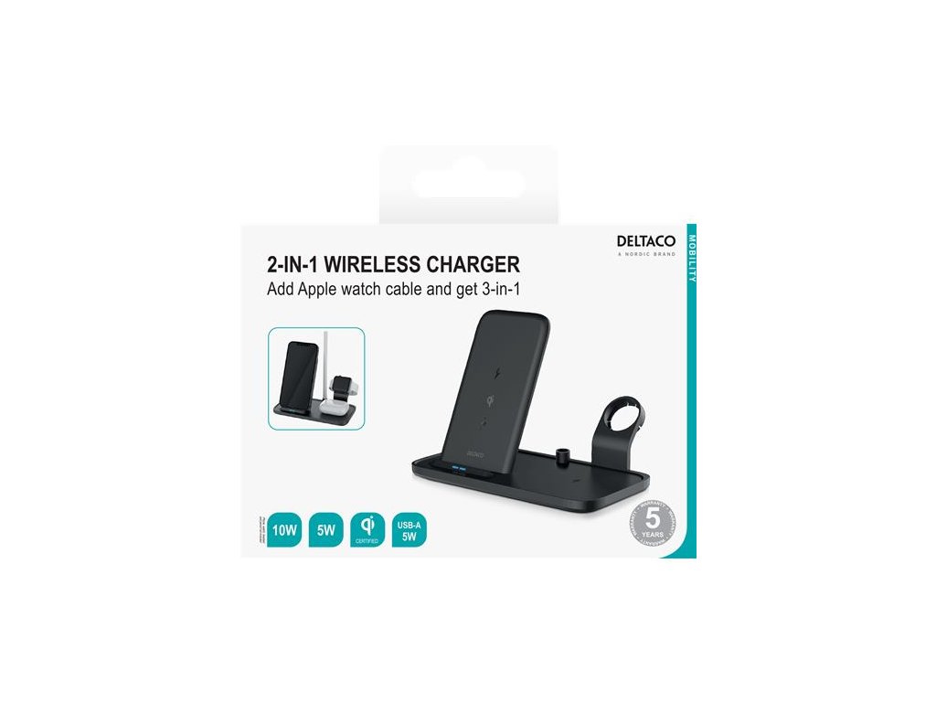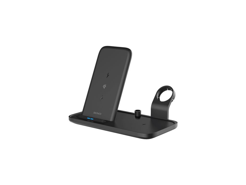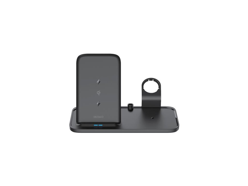 DELTACO QI-1036, 2v1 Bezdrôtová QI nabíjačka, čierna