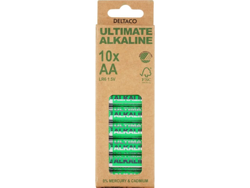 DELTACO ULTIMATE Nordic Ecolabel, Batérie alkalické AA, LR06, 10ks