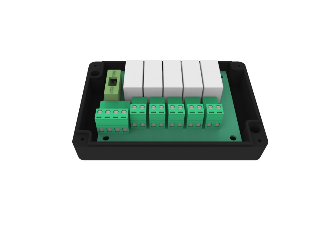 Integrácia piatich napäťových vstupov do jedného ovládaného výstupu 230V alebo beznapäťového výstupu.