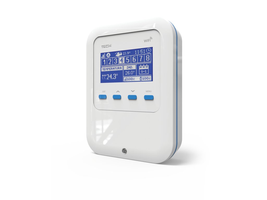 - WiFi 8S má zabudovaný snímač priestorovej teploty, ktorý môže byť použitý pre jednu zónu a súčasťou balenia je externý drôtovo prepojený snímač priestorovej teploty EU-C-7p,