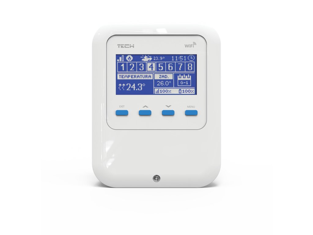 - WiFi 8S Mini nemá zabudovaný snímač priestorovej teploty a súčasťou balenia je bezdrôtový snímač priestorovej teploty EU-C-mini.