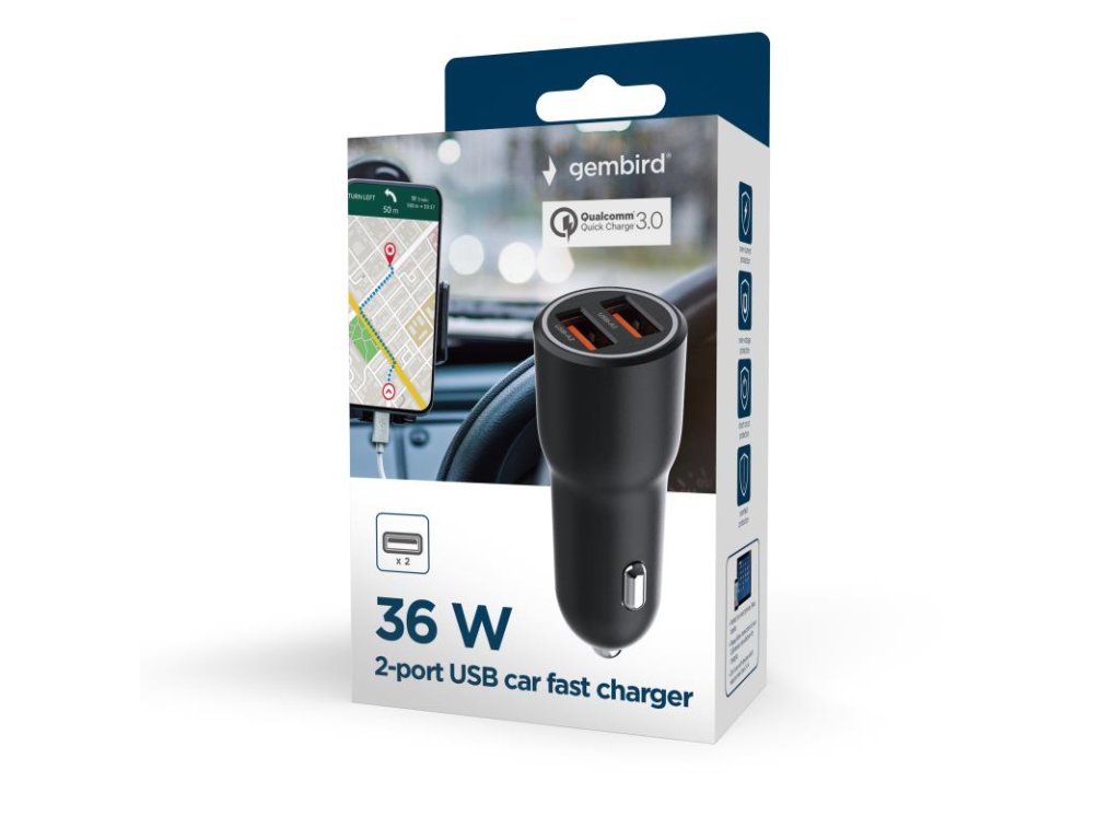 GEMBIRD Car Charger, Nabíjačka 2xUSB, 36W