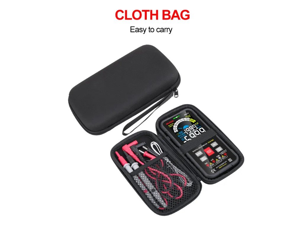 1ks multimeter / 2ks hroty s káblom / 1ks látkové vrecko/ 1ks termočlánková sonda |