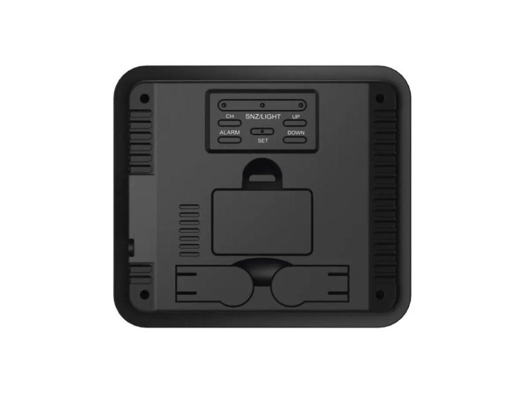 Ďalšie funkcie: Budík, Funkcia driemania (Snooze), Hodiny s rádiovým príjmom času (DCF signál), Indikátor kapacity batérií (vonkajší senzor), Indikátor kapacity batérií (základňa), Pamäť údajov, Vonkajší bezdrôtový senzor, Zobrazenie max./min. hodnôt