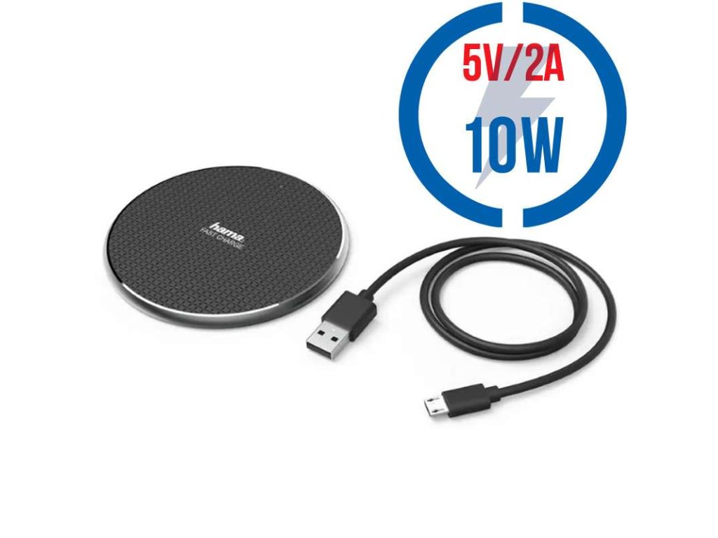 HAMA FC10, Bezdrôtová (Qi) nabíjačka 10 W - pre rýchle bezdrôtové (indukčné) nabíjanie všetkých kompatibilných zariadení, vďaka výkonu 10 W vhodná aj pre zariadenia s rýchlym nabíjaním, jednoducho položte zariadenie na nabíjačku a nabíjajte, elegantné tenké prevedenie z pevného plastu, nabíjací proces optimalizovaný pre dané zariadenie zaručuje maximálnu rýchlosť nabíjania a šetrnosť k akumulátoru, inteligentné a bezpečné nabíjanie: ochrana voči prebitiu, prepätiu a skratu, detekcia cudzích predmetov