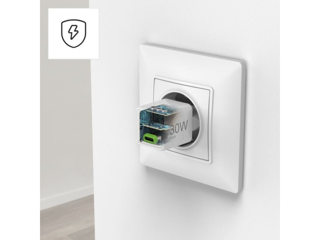 Inteligentné a bezpečné nabíjanie: Integrovaná elektronika automaticky rozpozná pripojené zariadenie a prispôsobí mu nabíjací prúd tak, aby bolo nabíjanie nielen rýchle, ale aj maximálne bezpečné. Viacnásobná ochrana proti prebíjaniu, preťaženiu, skratu a prehriatiu je samozrejmosťou.