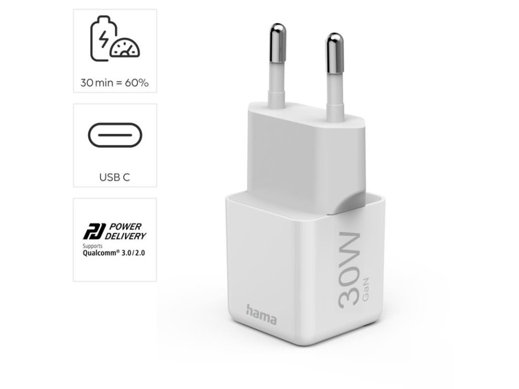 HAMA Super-mini, Rýchlonabíjačka, USB-C PD/QC 30W