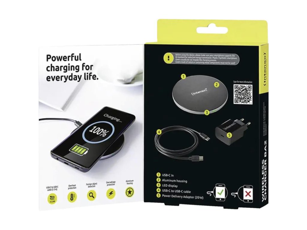 INTENSO BA2, Bezdrôtová (Qi) nabíjačka 15W