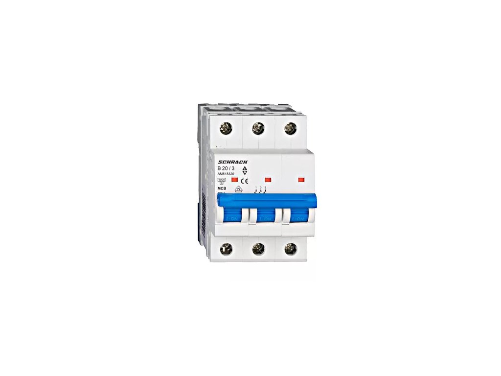 Istič B20/3 6kA, charakteristika B, 20A, 3-pólový. Typ produktu AM6, Normy EN 60898Dodatočné parametre