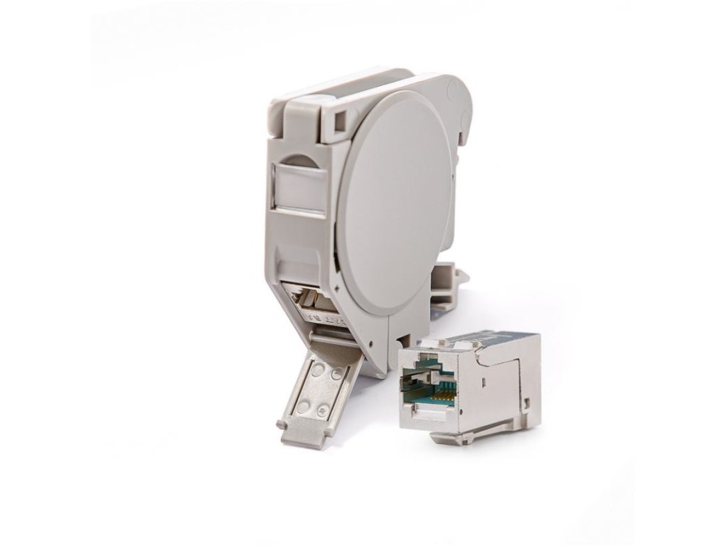 KELINE Držiak na DIN lištu Cat 6A 1xRJ45/s osadený