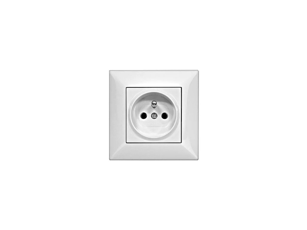 Kompletná zásuvka STN s rámikom, biela, pružinové svorky