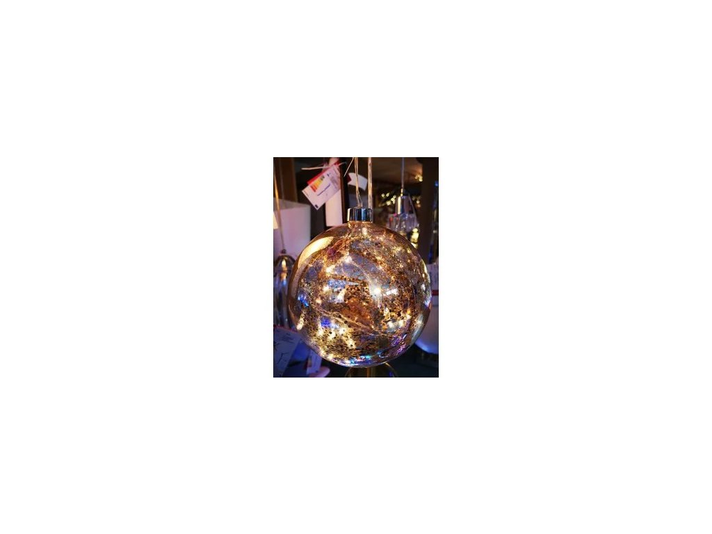 Sklenená svietiaca guľka, strieborné prevedenie. Adaptér je súčasťou balenia.Gulička svieti v teplej farbe.Dodatočné parametre