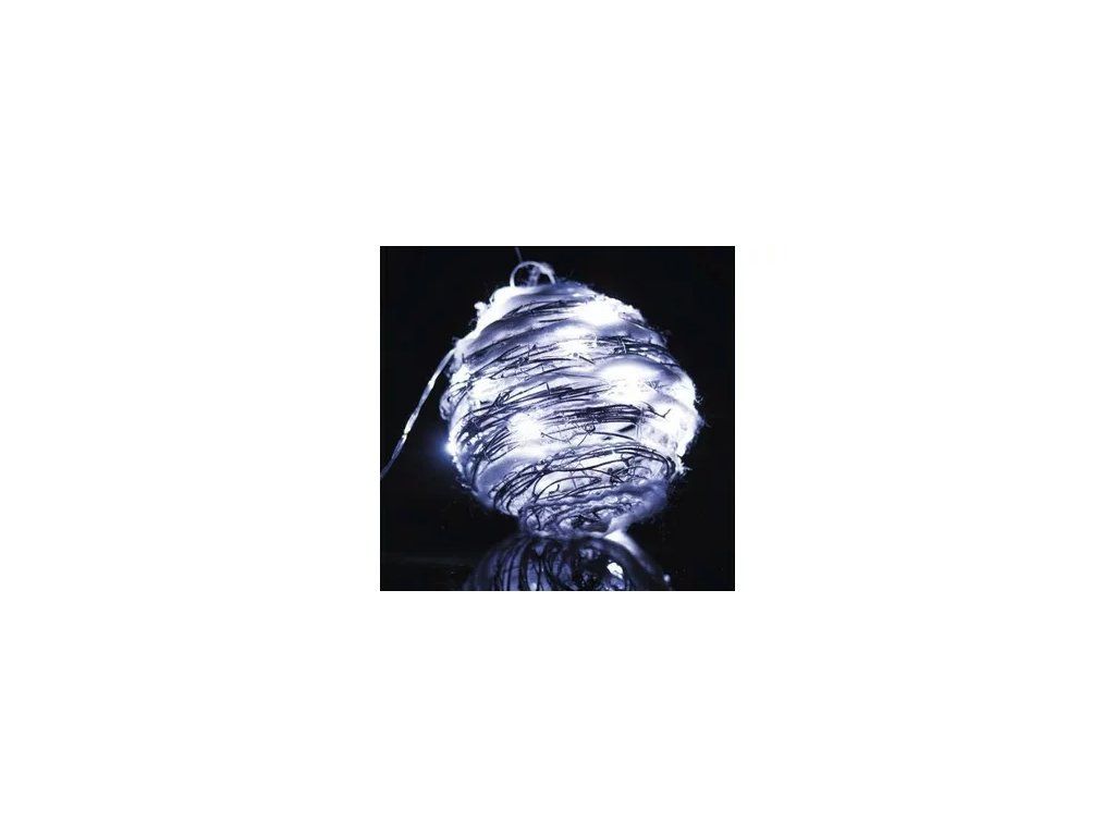 Ratanová posnežená guľka s 20 ledkami, na zavesenie, vnútorné použitie. Nabatérie 2xAA. 16x16cm.Dodatočné parametre