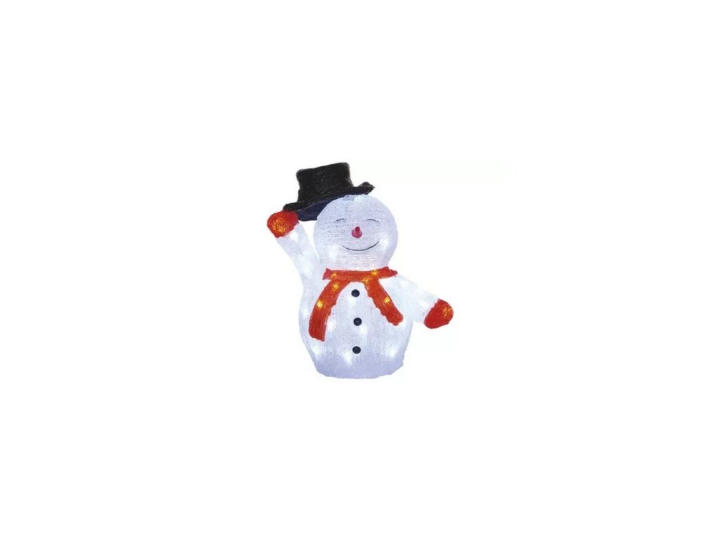 LED svietiaci snehuliačik so 40 ledkami. S časovačom. Na vnútorné aj vonkajšiepoužitie. Výška 36cm. Studené biele svetlo.Dodatočné parametre