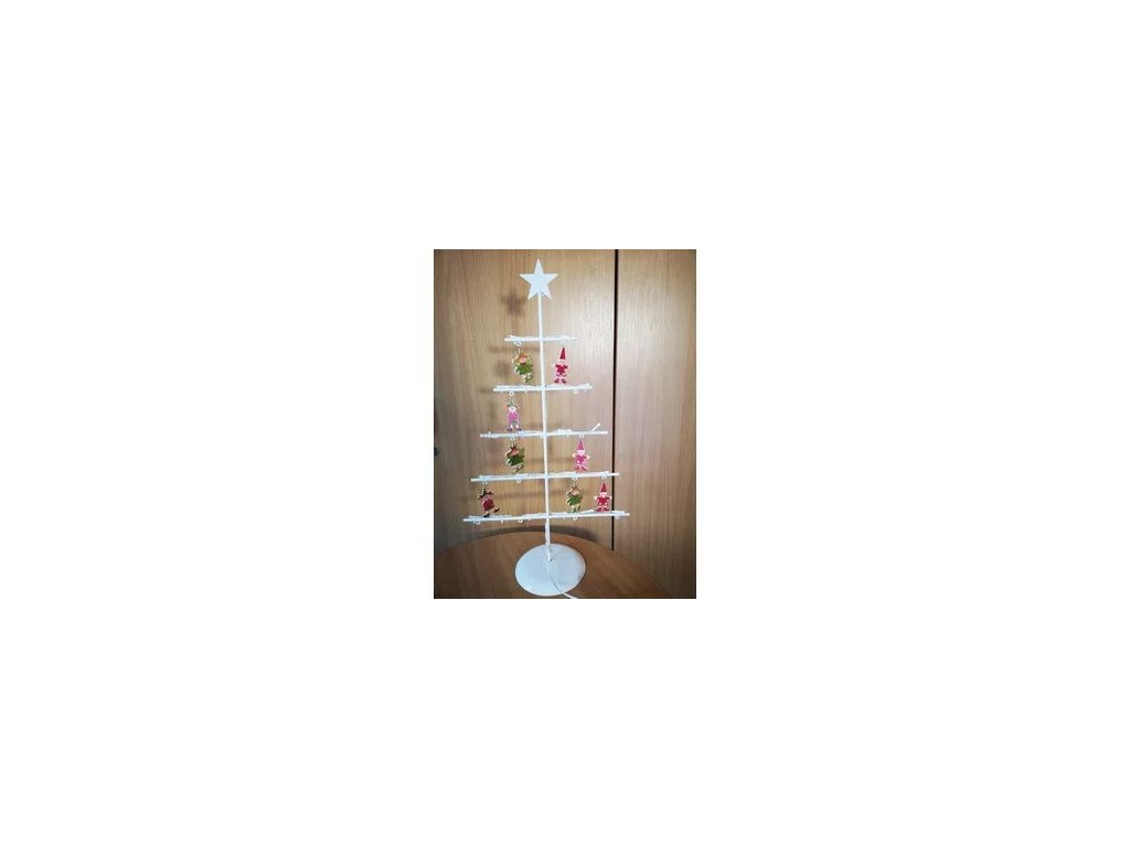Vianočný kovový svietiaci stromček s drevenými postavičkami. Napájač jesúčasťou balenia. Stromček svieti teplým bielym svetlom.Dodatočné parametre