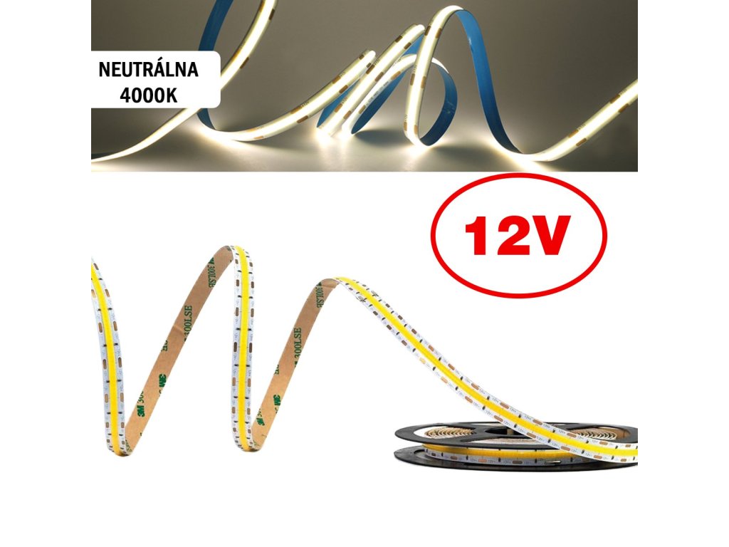 LED pás COB 12V 8W 4000K 690lm - ELWATT - ELW-206,320 LED/m,180° rozptyl,IP20