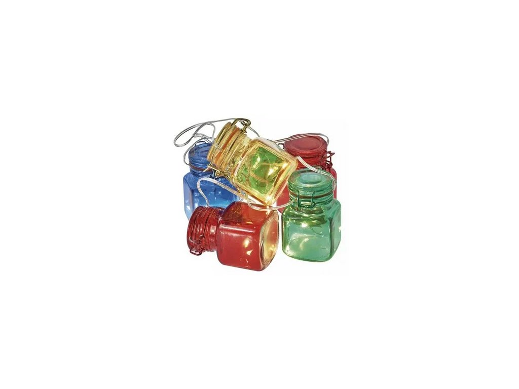 LED retiazka s 6 farebnými sklenenými dozičkami. Dĺžka 1,5 metra. Na batérie3xAA. Vnútorné použitie.Dodatočné parametre