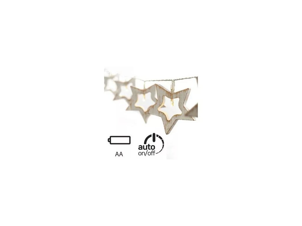 ReÅ¥az s 10 drevenými hviezdami s ledkami. Dĺžka 1,35 metra, 10 lediek, teplé bielesvetlo. Na baterky 2xAA.Dodatočné parametre