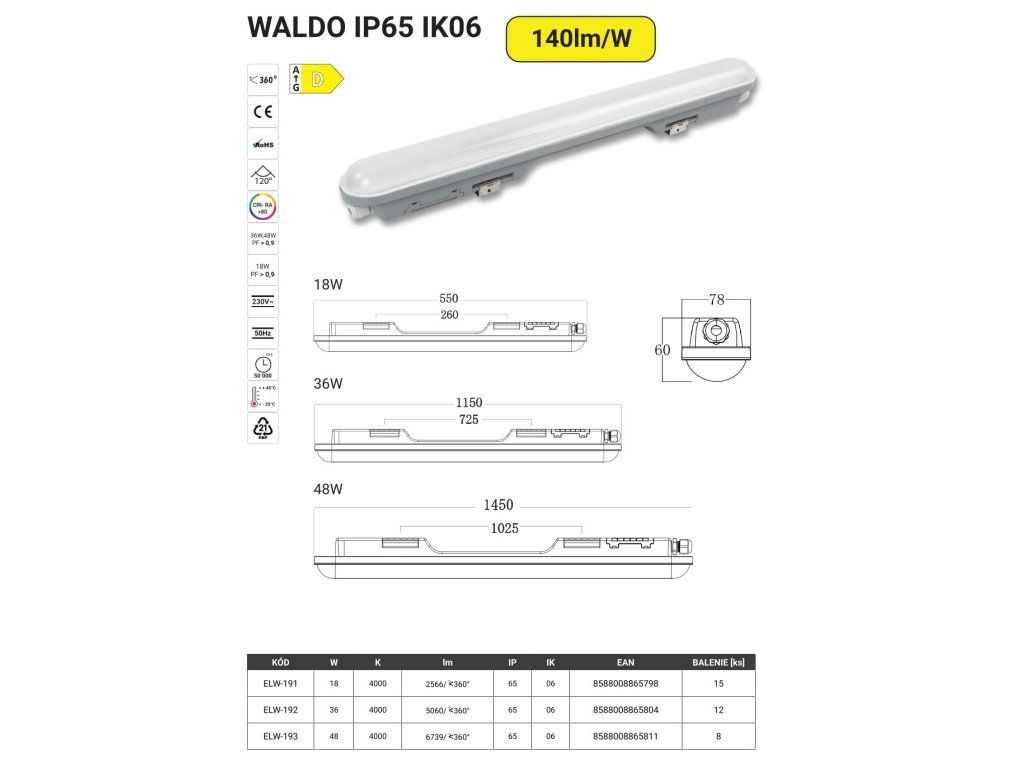 LED svietidlo WALDO 4000K 36W/5060lm IP65 - ELW-192