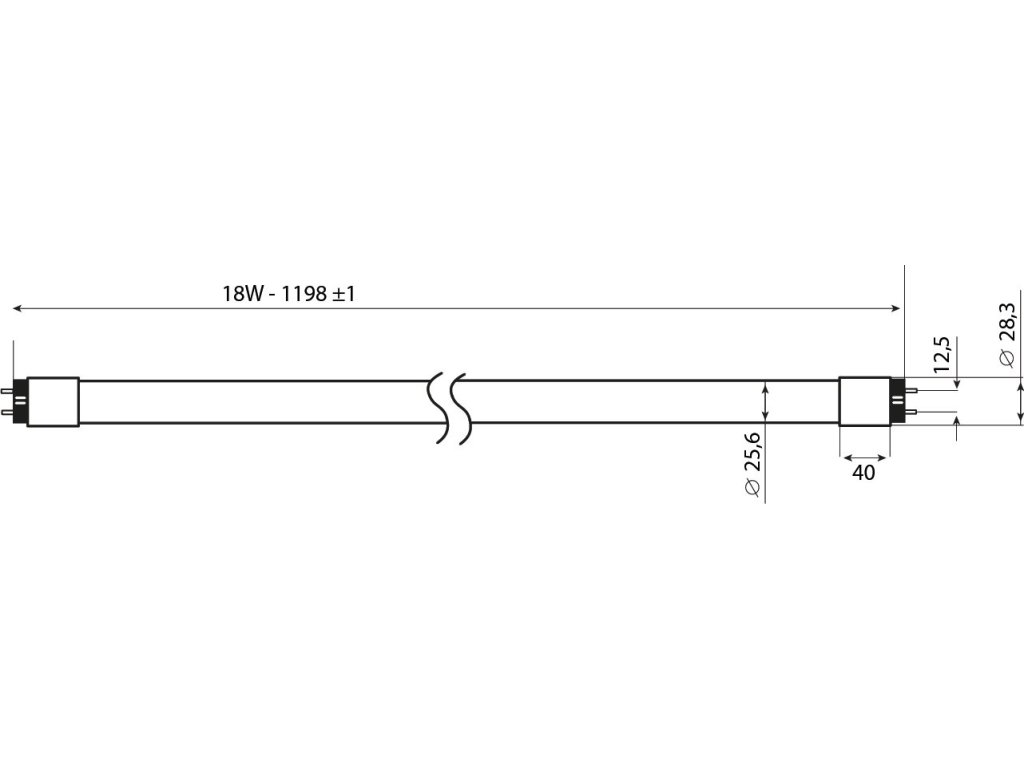 • Výkon max (W): 18 • Tvar: T8 • Šírka (cm): 120 • Stmievanie: nie • Možnost nastavenia toku svetla: nie • Typ sortimentu: žiarovky LED • Zdroj svetla: LED • Svetelný tok (lm): 1800 • Teplota chromatickosti (oK): 6000K • Farba svetla: studená biela • Materiál: umelá hmota • Počet zdrojov svetla: 1 • Uhol vyžarovania (o): 270 • Stupeň ochrany krytom: IP20 • Energetická účinnosť: F • Napätie (V): 230V • Životnosť (hod): 25000Dodatočné parametre