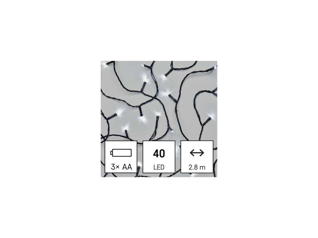 LED vianočná reťaz, 2,8 m, 3x AA, vonkajšia aj vnútorná, studená biela, časovač
