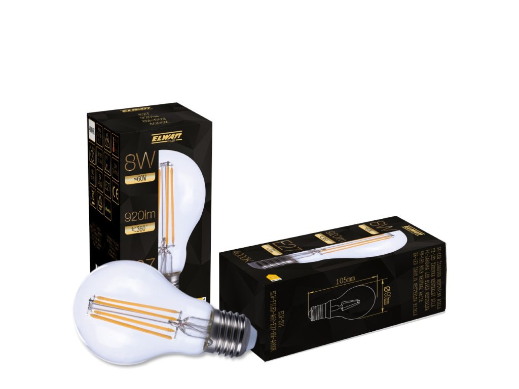 LED žiarovka FILAMENT - A60 E27 8W/4000K - 920lm - ELWATT - ELW-201