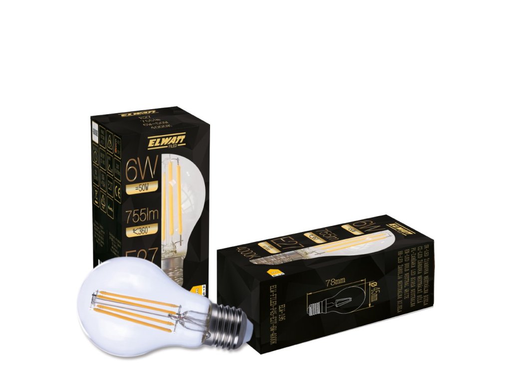LED žiarovka FILAMENT - P45 E27 6W/4000K - 755lm - ELWATT - ELW-196 • LED žiarovka FILAMENT • Pätica: E27 • Príkon: 6W • Ekvivalent: 6W=50W • Farba svetla: 4000K/ neutrálna biela • Svetelný tok: 755lm • Tvar svetelného zdroja: P45 • Aplikované napätie: 230V, 50Hz • IP ochrana: IP20 • Rozmer: 78mm x 45mm • Životnosť: 30 000h • On/off: 20 000Dodatočné parametre