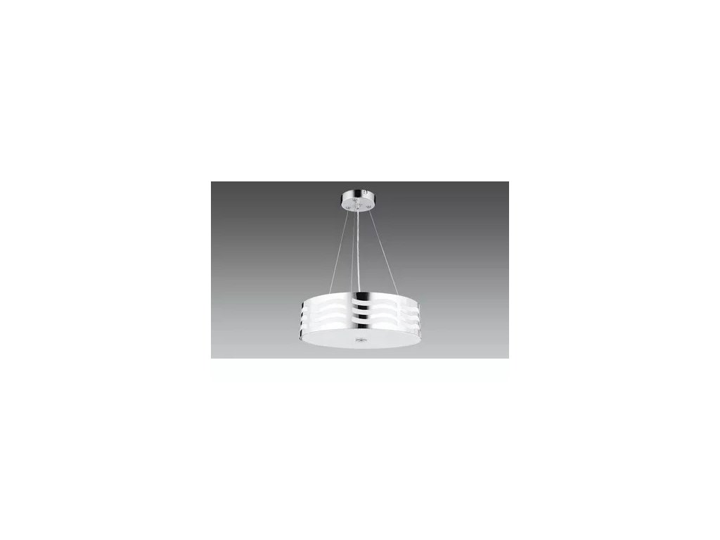 Závesný luster na žiarovky, vyrobený z bieleho plastu a kovu chrómovej farby.Dodatočné parametre