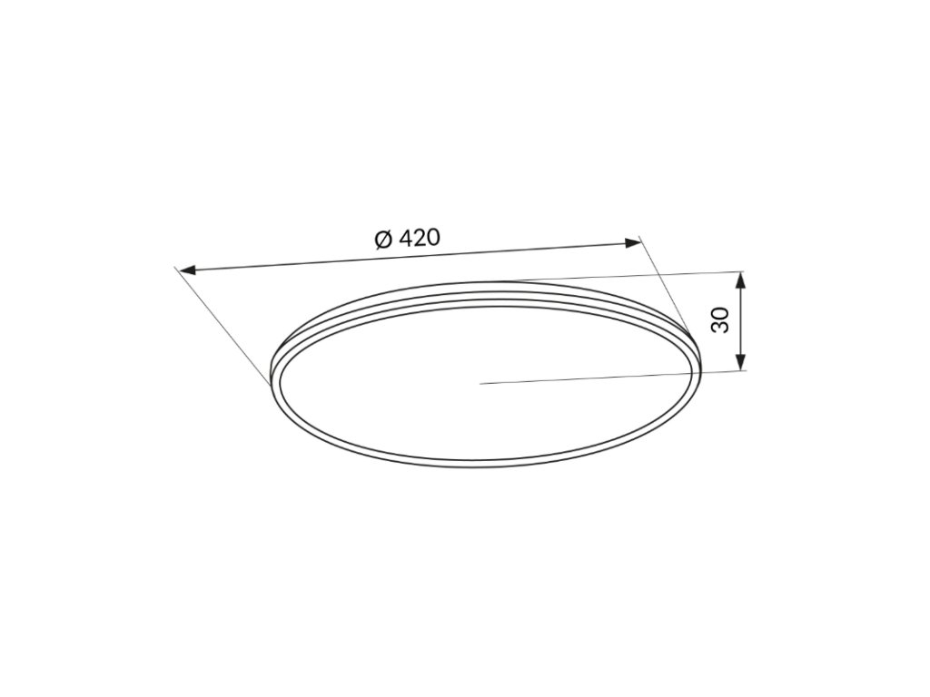 Svietidlo má rozmery ⌀ 420 × 30 mm, hmotnosť 1090 g a je vyhotovené v bielej farbe.