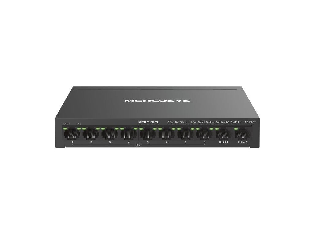 10-portový 10/100 Mbps desktopový switch s 8-Port PoE+ (MS110CP)
