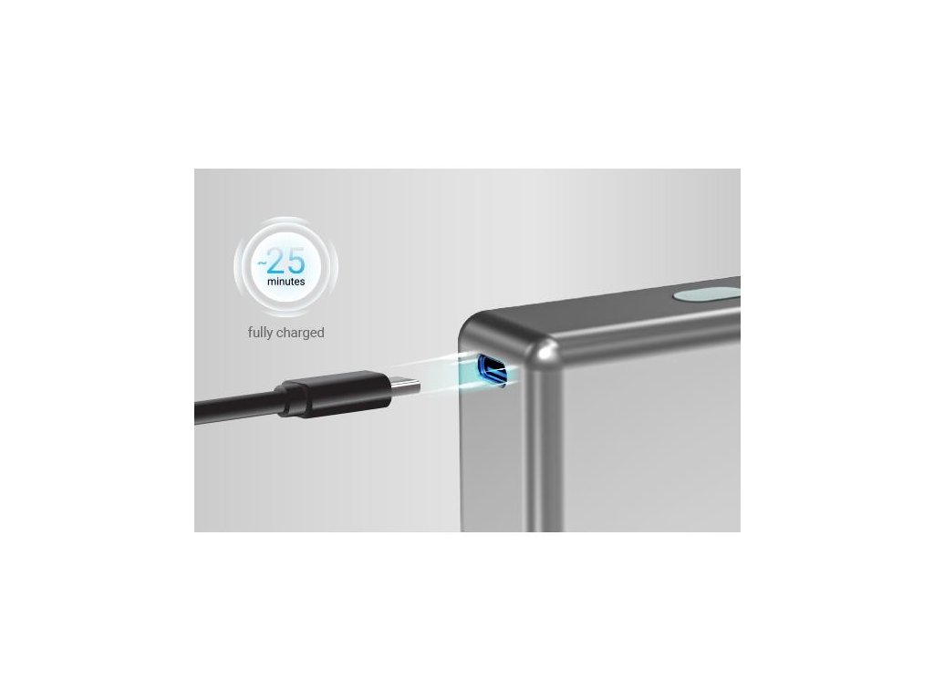 Kompresor je poháňaný malou, ale výkonnou batériou, ktorú je možné nabíjať takmer z akéhokoľvek zdroja, či už ide o powerbanku, nabíjačku do auta alebo bežnú zásuvku. Stačí iba 25 minút a kompresor bude opäť pripravený na použitie. Jedinou podmienkou je, že NAVITEL AIR8 MINI musí byť pripojený ku zdroju napájania pomocou USB-C kábla. LED indikátor vás upozorní, až bude zariadenie plne nabité a pripravené k použitiu.