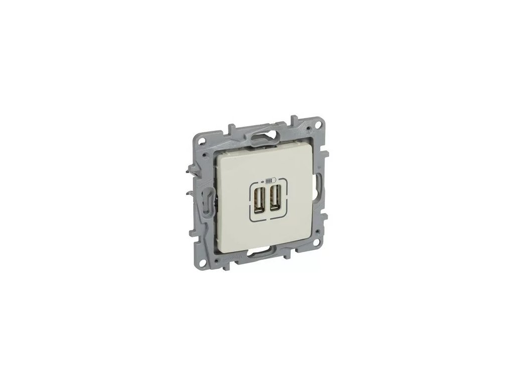 Dvojitá USB nabíjačka, bez rámika, farba béžová, IP20.Dodatočné parametre