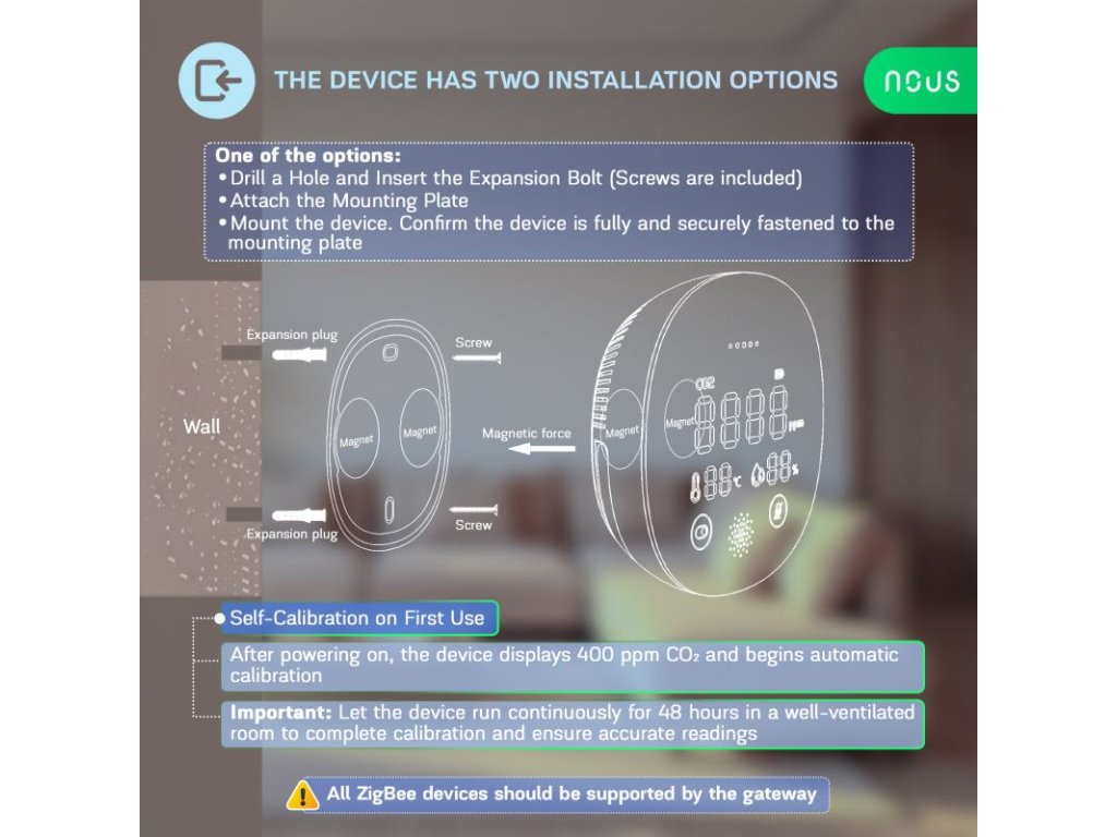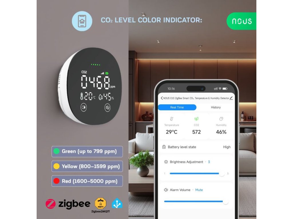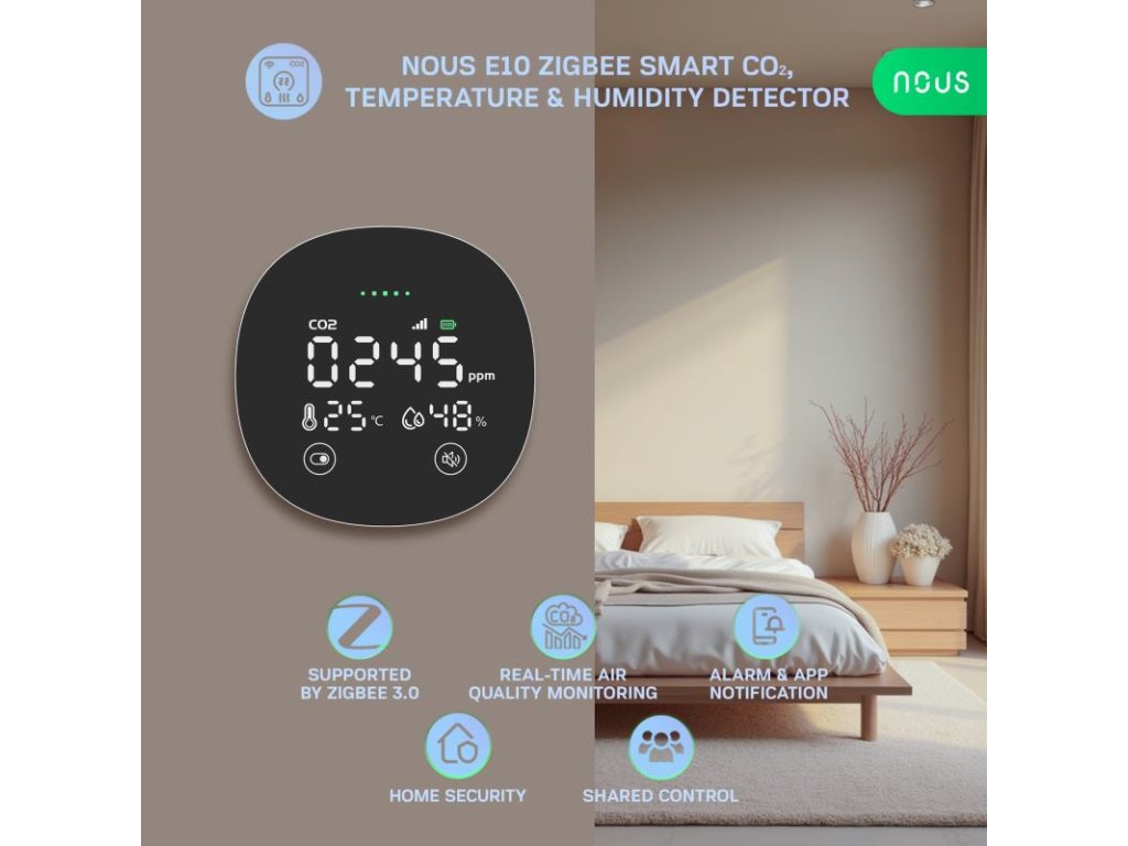 NOUS E10 Tuya/ZigBee, Senzor CO2teploty a vlhkosti