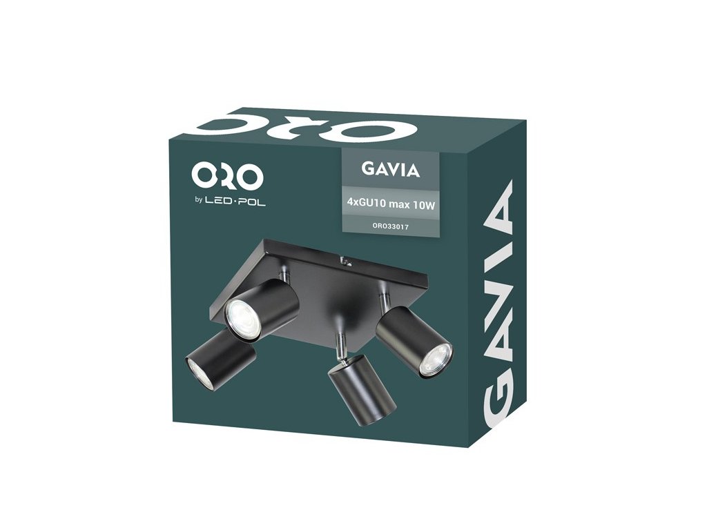 Toto povrchovo montovateľné svietidlo ORO GAVIA v elegantnej čiernej farbe kombinuje minimalistický dizajn s vysokou funkčnosťou. Štyri samostatné hlavy s päticami GU10 umožňujú presne nasmerovať svetlo tam, kde ho najviac potrebujete – či už ide o pracovnú zónu, dekoratívne prvky či všeobecné osvetlenie miestnosti.