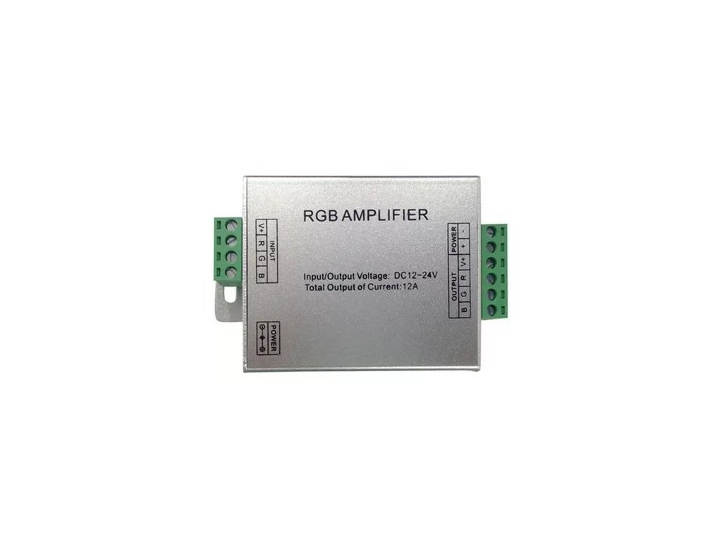 RGB zosilovač. IP33. DC12V - 24V. 144W, 4A každá farba.