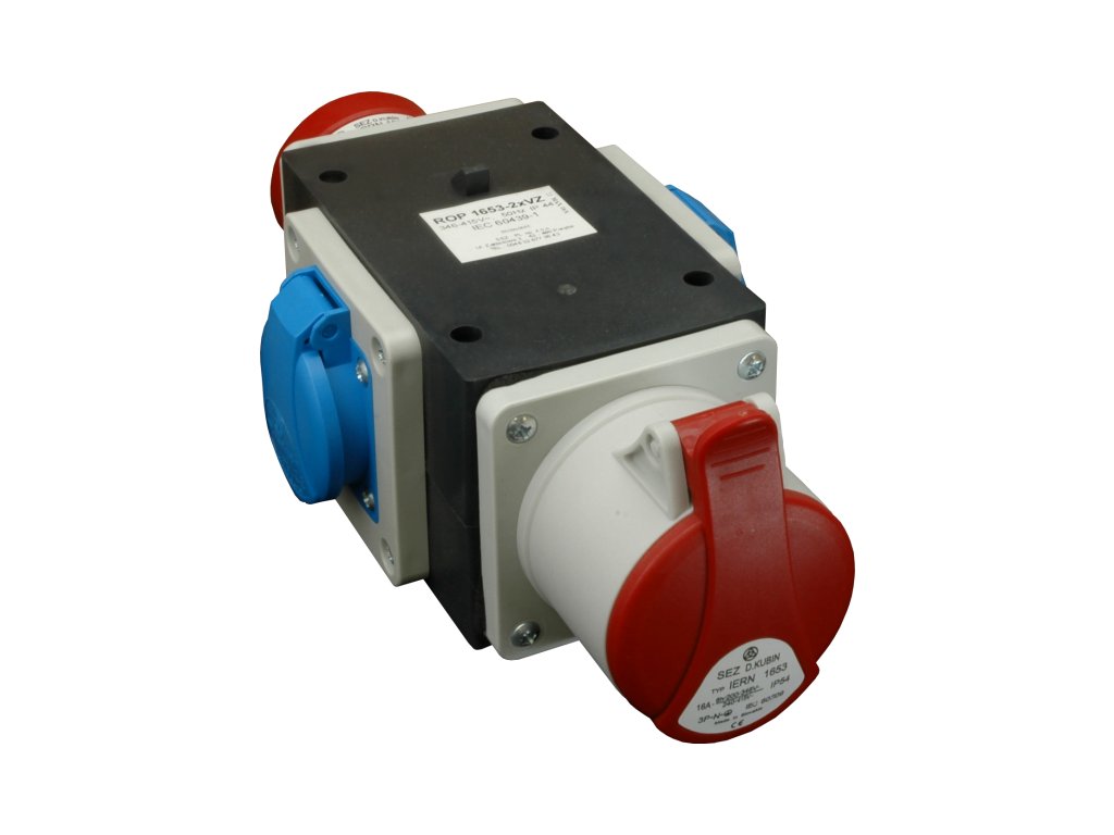 Rozvodnica::VSTUP-PRÍVODKA 16A/5P/400V,VÝSTUP -1X 16A/5P/400V- 2x16A/1P/230V