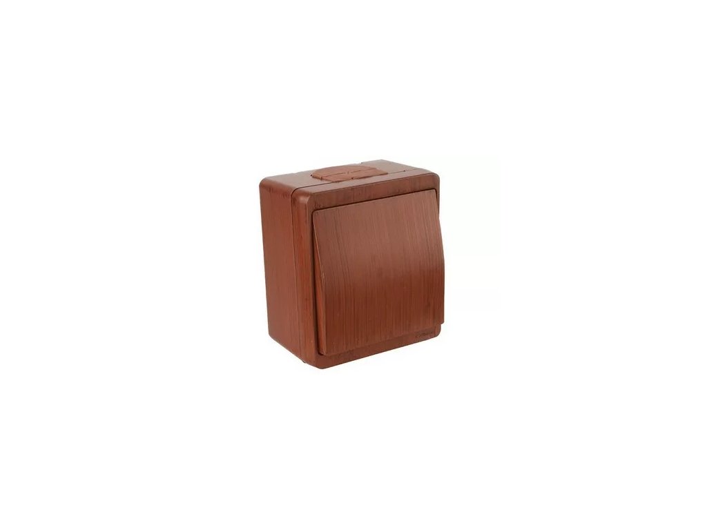 1- pólový spínač na povrch, imitácia dreva.Farba: merbauStupeň ochrany: IP44Dodatočné parametre