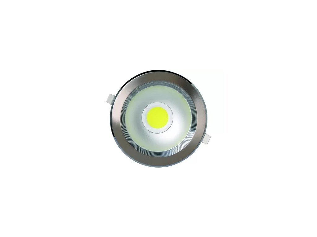 Vstavané LED downlight svietidlo okrúhle. AC 200-240V / 50-60Hz. COB LED,30W, 1880lm, 4200K, IP20. Rozmery: priemer 23 cm, výška 6 cm. Priemermontážneho otvoru: 20,5 cm. Farba: matný chróm. Priemerná životnosť: 40 000hodín.Dodatočné parametre
