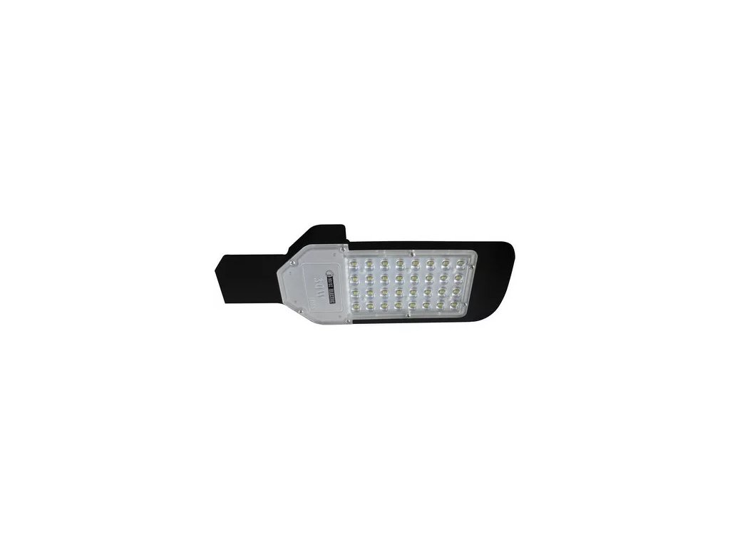 Pouličné LED svietidlo, IP65. Watáž: SMD LED 30W, 6400K, 2829lm. Rozmery:35,5 x 12,5 cm. Materiál: kov. Farba: sivá.Dodatočné parametre