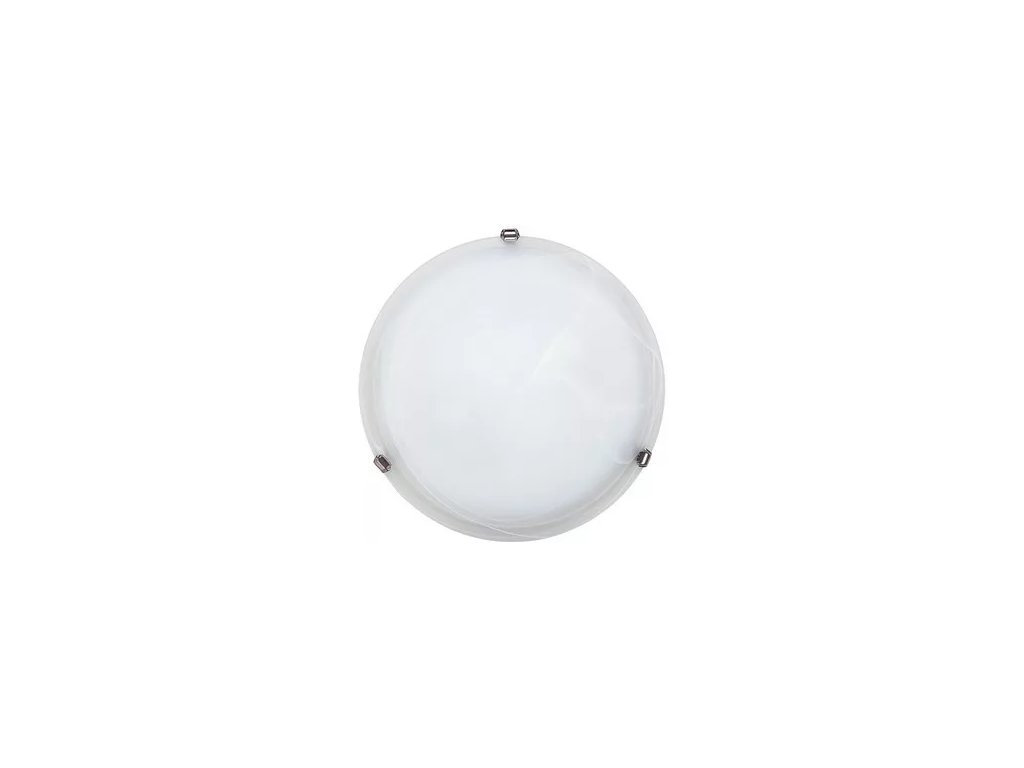 Sklenené svietidlo ALABASTRO kruhové na strop. Biele vzorované sklo s kovovýmiúchytkami chrómovej farby. 2x60W E27.Dodatočné parametre