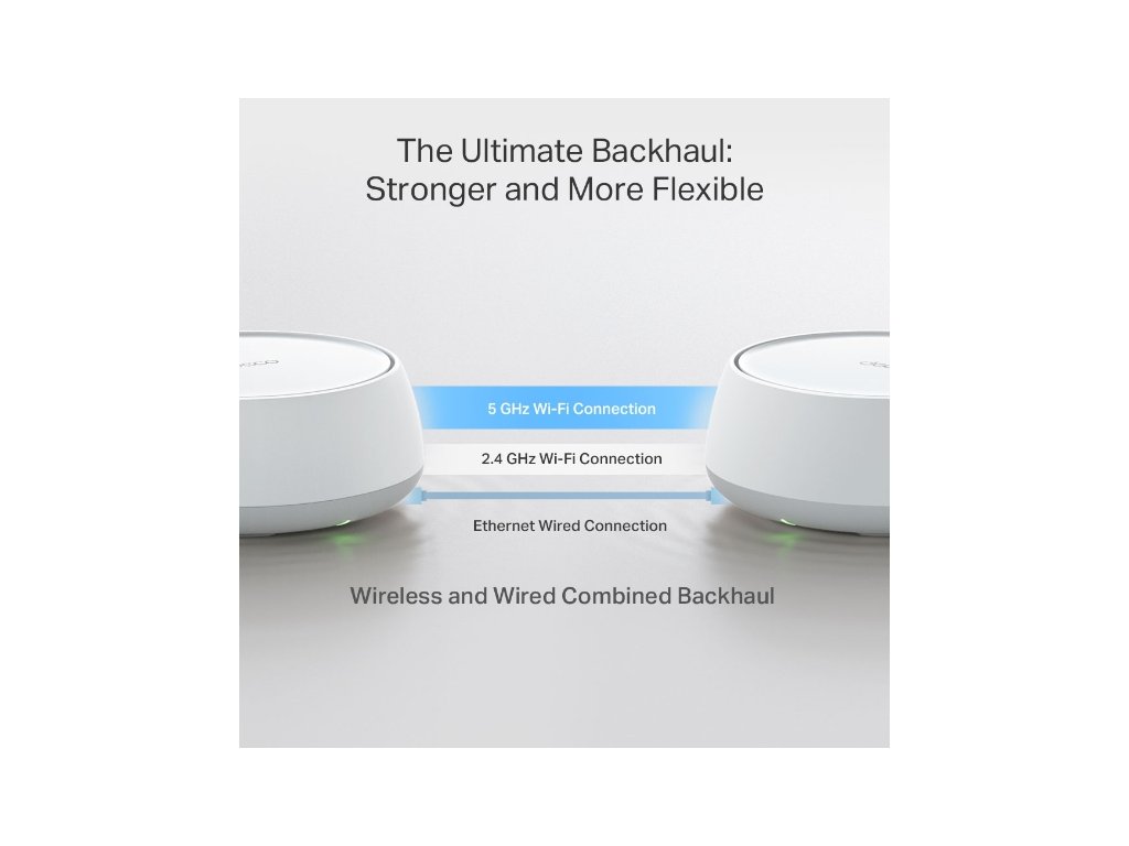WiFi pokrytie: Široké pokrytie pre celú domácnosť vďaka TP-Link Mesh Technology a voliteľnému Ethernet backhaulu.