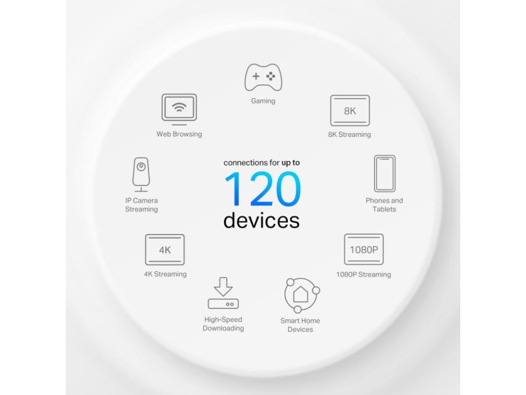 1201 Mb/s (5 GHz) a 300 Mb/s (2,4 GHz), dvojpásmová Wi-Fi s technológiou Wi-Fi 6.