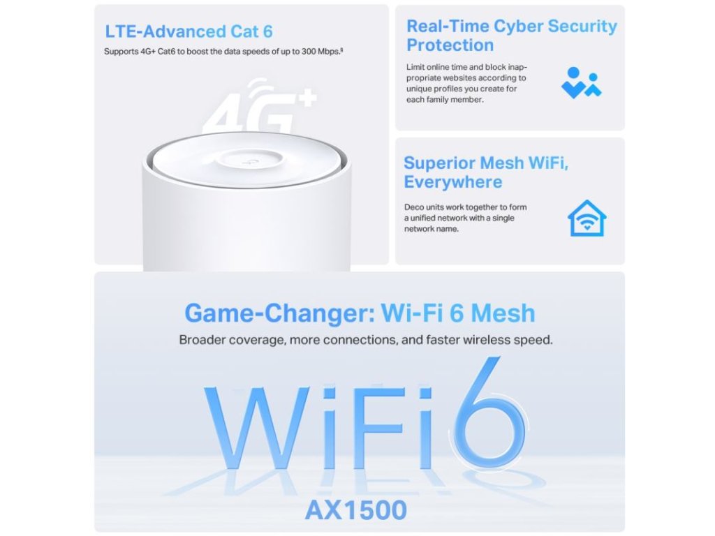 Poskytuje pokrytie WiFi 6 Mesh prostredníctvom prístupu 4G+ CAT6.
