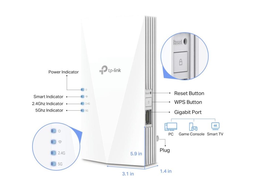 TP-Link RE700X, AX3000 Wi-Fi 6 Range Extender