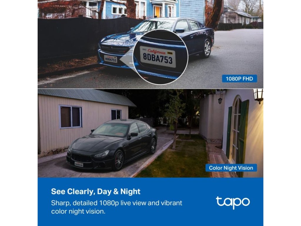 Jasný obraz deň a noc: Kamera ponúka ostrý 1080P Full HD živý obraz a živé nočné vízie vrátane farebného nočného videnia pre kompletný monitoring vášho domu.