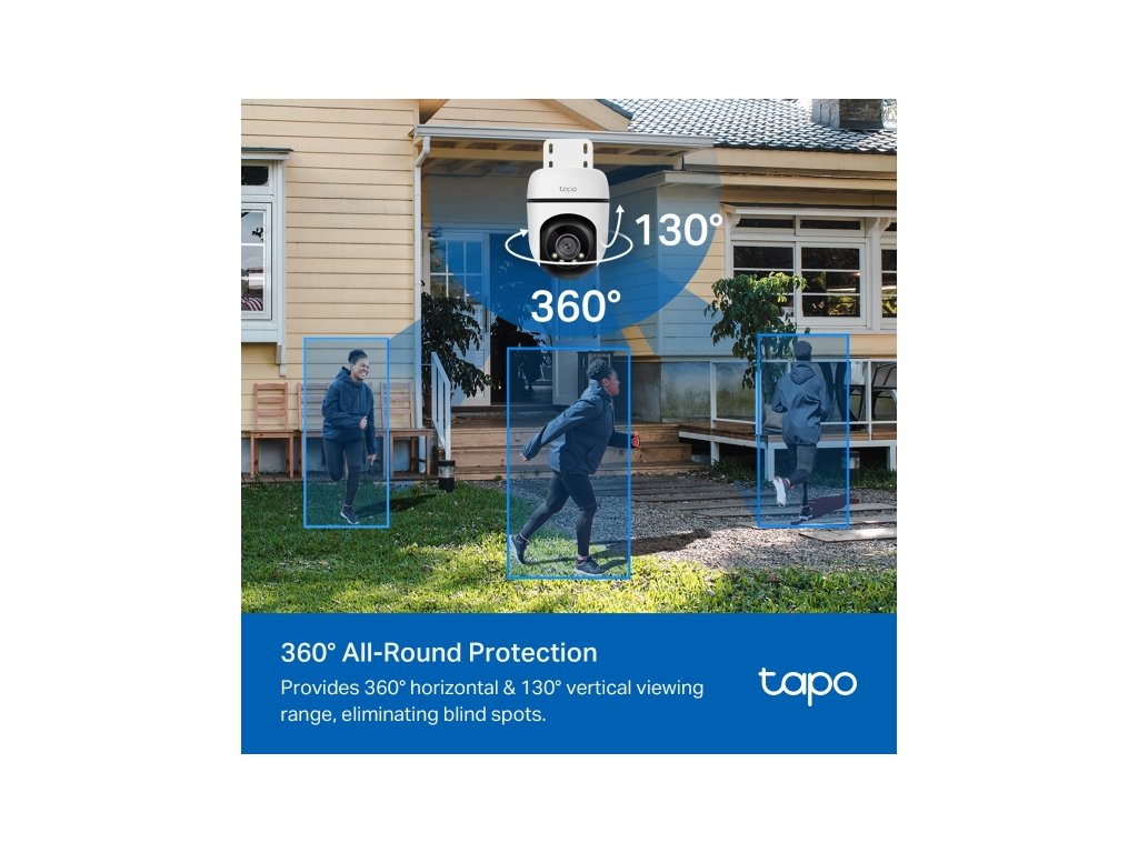 Komplexná ochrana 360°: Kamera Tapo C510W poskytuje 360° horizontálny a 130° vertikálny rozsah pohľadu, čím eliminuje mŕtve uhly a umožňuje monitorovať väčšie plochy.