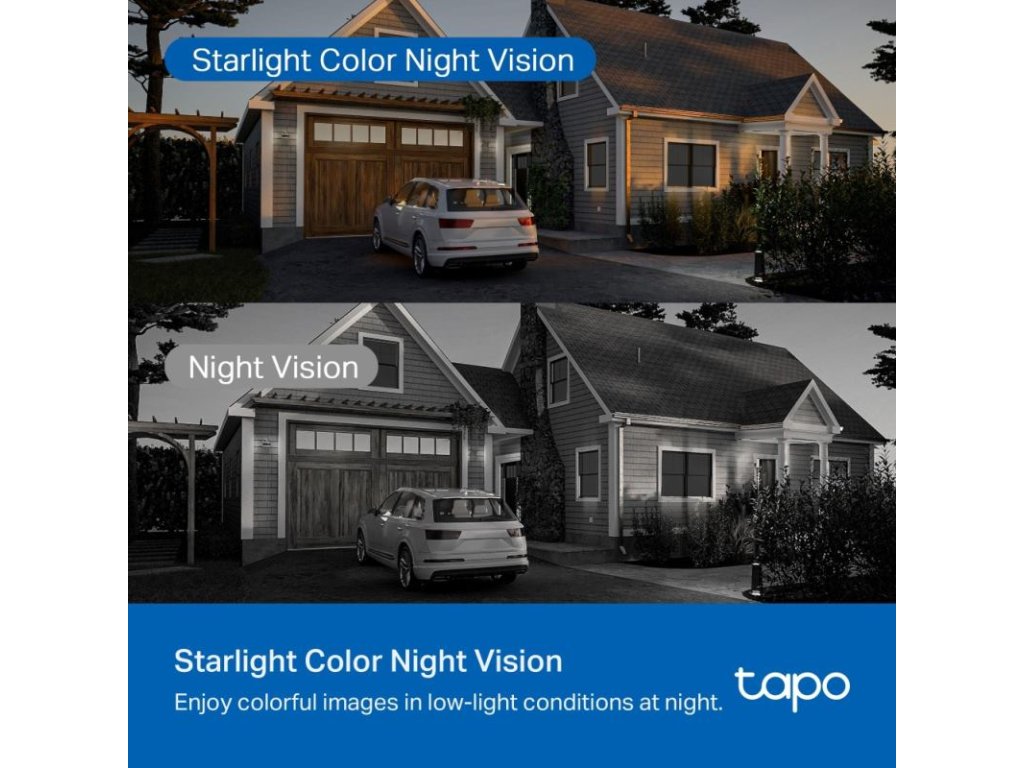 Farebné nočné videnie so snímačom Starlight - Zvyšuje bezpečnosť tým, že vďaka vstavaným reflektorom a senzoru hviezdneho svetla odhaľuje jasnejší, plnofarebný obraz a živé detaily aj za zlých svetelných podmienok.