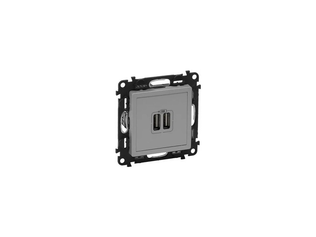 Dvojitá USB nabíjačka, farba hliník, bez rámika, bez kábla, IP20.Dodatočné parametre
